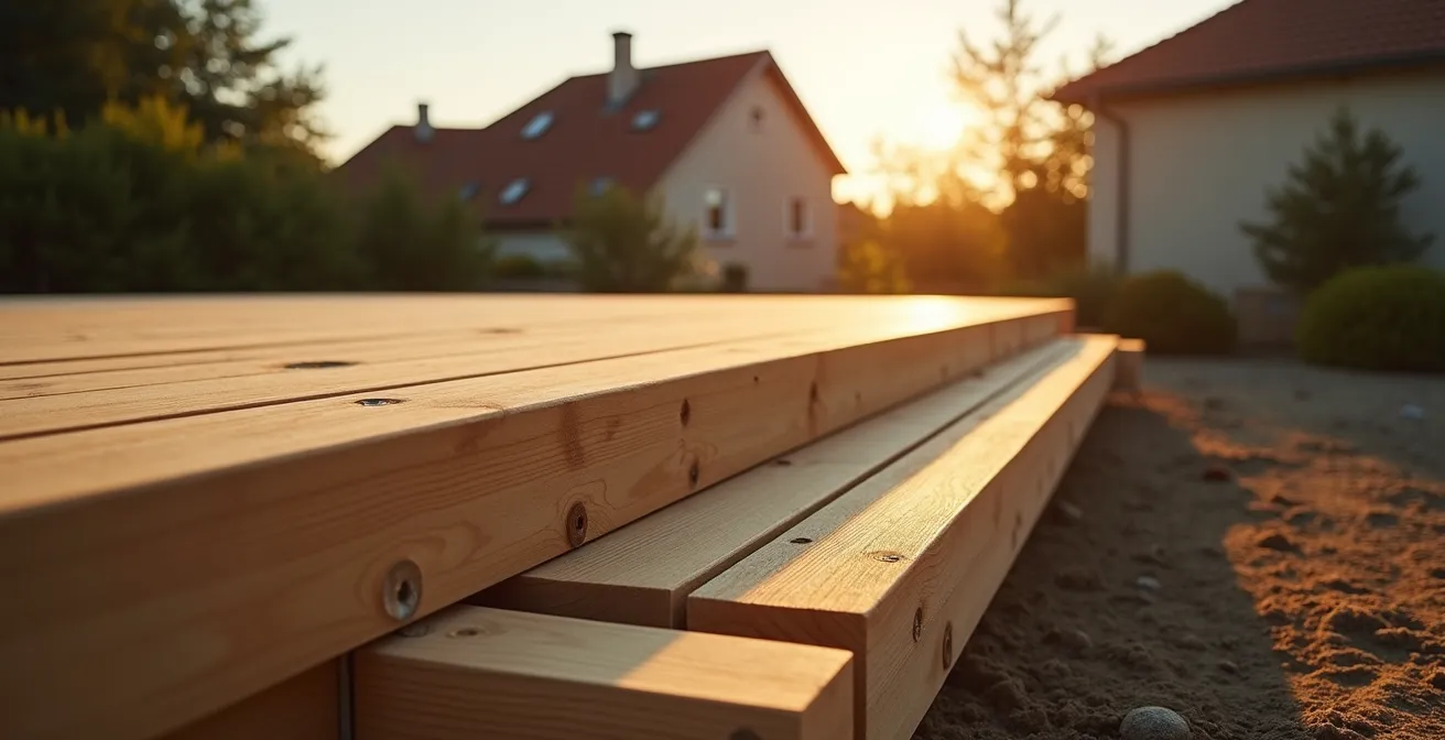L’idée d’une terrasse en bois, c’est la promesse d’un nouvel espace de vie, de moments conviviaux sous le soleil. Pourtant, pour de nombreux propriétaires, ce rêve se transforme en cauchemar : lames qui se déforment, structure qui grince, bois qui pourrit prématurément. La cause ? Une conception qui néglige les règles de l’art, souvent par méconnaissance des principes physiques qui régissent la vie du bois en extérieur. On trouve pléthore de tutoriels promettant un montage « facile et rapide », mais qui omettent les détails cruciaux, ceux qui font la différence entre un ouvrage pérenne et une structure à refaire dans cinq ans.