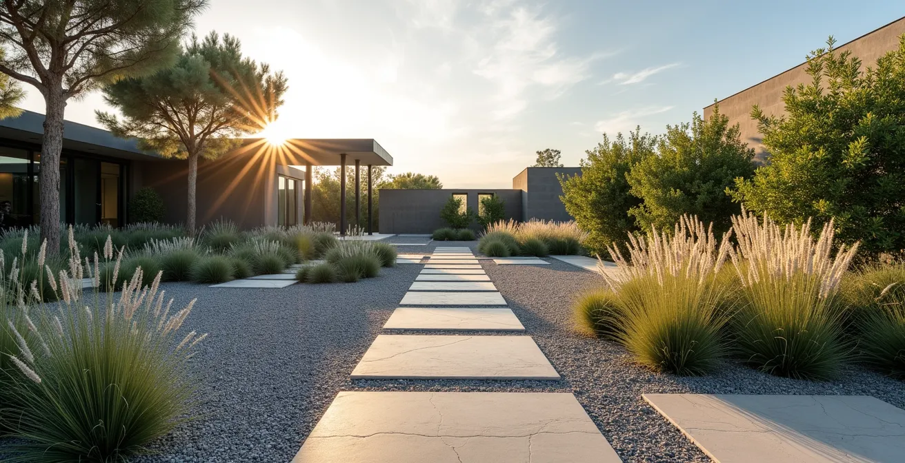 - Le jardin sec est un choix de design affirmé, pas une concession, qui valorise les plantes architecturales et le paillage minéral comme éléments de style.