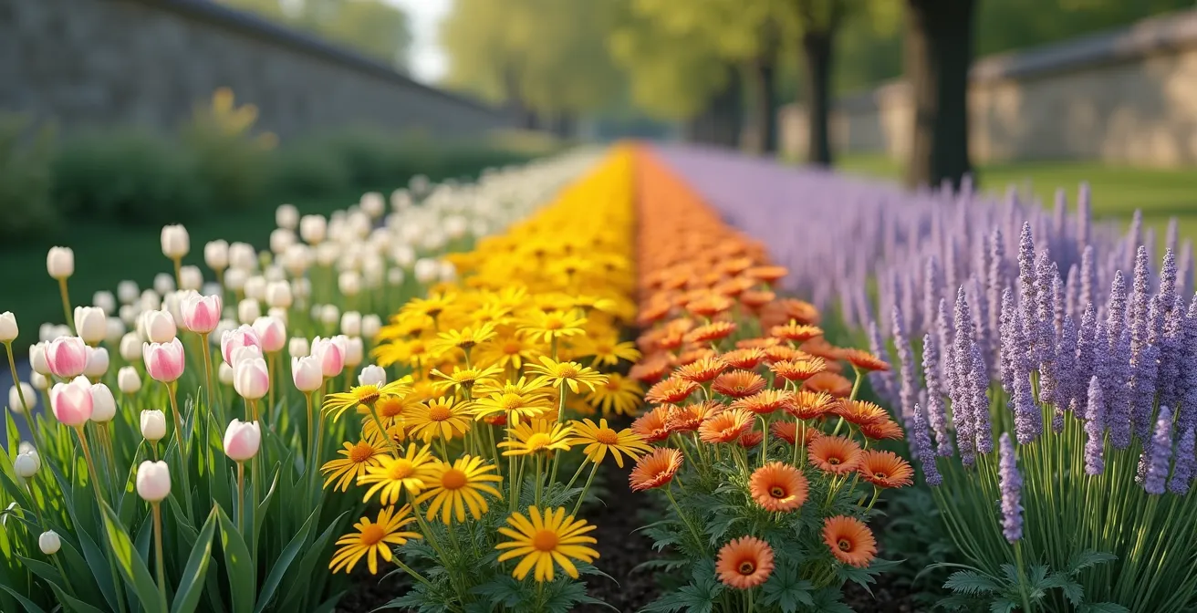Le rêve de tout jardinier passionné est de contempler un massif vibrant de couleurs et de vie, du premier perce-neige aux dernières lueurs d’automne. Pourtant, la réalité est souvent moins poétique : une explosion magnifique en mai, suivie d’un essoufflement en juillet et d’un vide mélancolique dès les premiers frimas. Face à ce constat, les conseils habituels fusent : « échelonnez les floraisons », « mélangez les couleurs », « paillez le sol ». Ces astuces, bien que justes, ne sont que la partie émergée de l’iceberg.