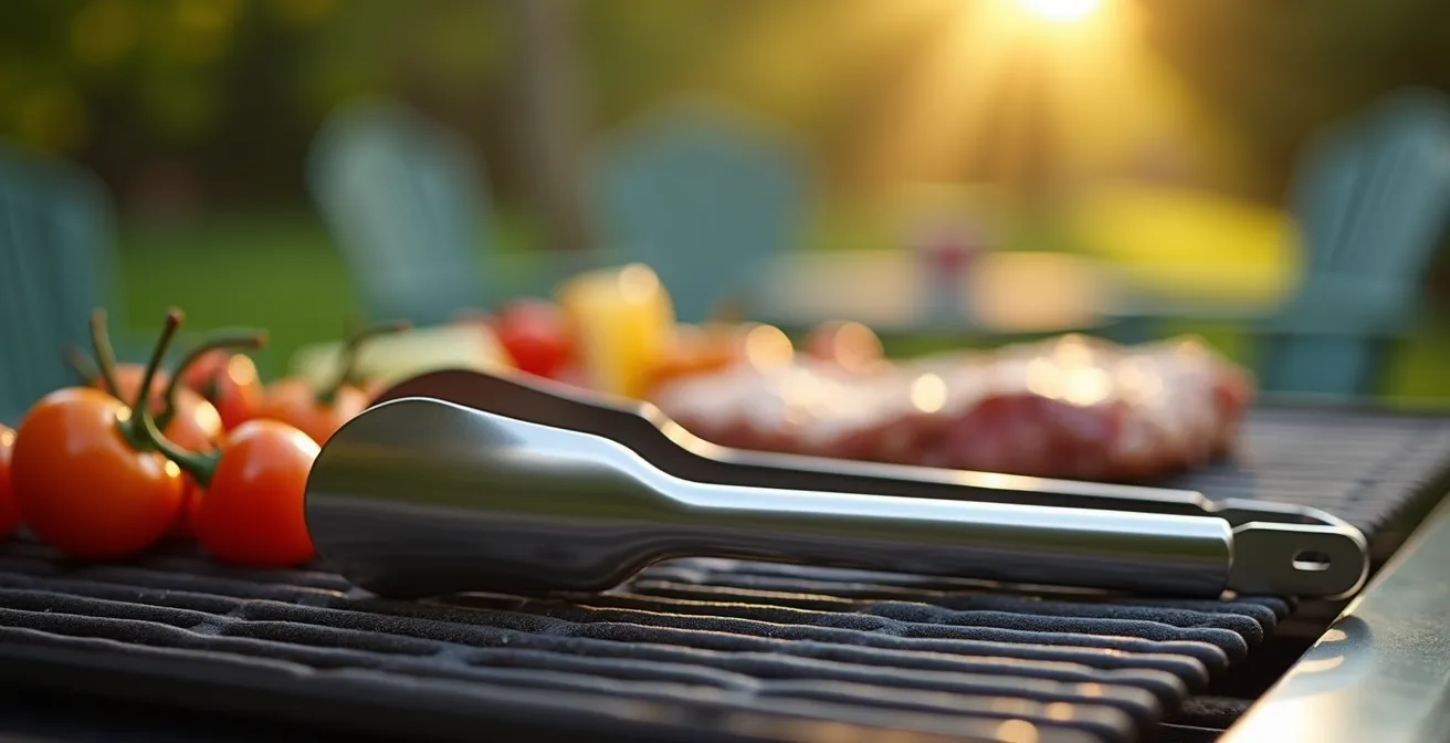 Le crépitement des braises, l’odeur des grillades… Le barbecue est un rituel convivial, un plaisir simple. Pourtant, derrière cette image d’Épinal se cache une réalité sanitaire souvent ignorée. Nous nous concentrons sur la qualité de la viande, mais nous négligeons l’essentiel : l’outil qui fait le pont entre le feu et notre assiette. La plupart des conseils se limitent à des évidences, comme éviter les ustensiles en plastique qui fondent ou choisir une longueur « suffisante ». Ces recommandations sont non seulement incomplètes, mais elles passent à côté du véritable enjeu : la composition chimique du métal en contact avec vos aliments.